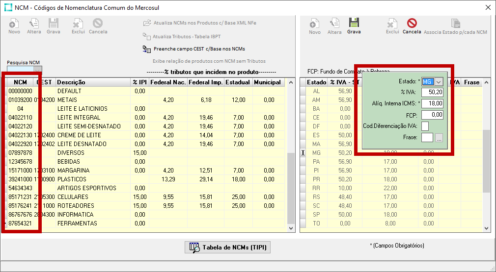 Após o Estado, o IVA ou MVA e o ICMS interno do destino estarem associados corretamente ao NCM, o cálculo da ST é realizado automaticamente.